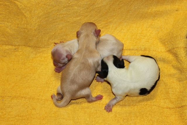シルバーが2頭、ゴールデンが1頭、性別はまだわかりません。 |