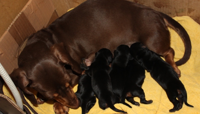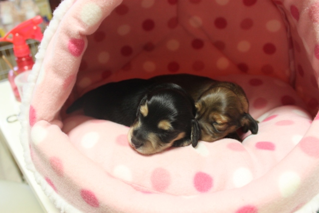 Mダックスフンドの赤ちゃん誕生しました〜 毛色はすべてブラックタン☆彡 生れたてのホヤホヤです。