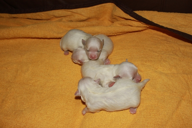 マルチーズの赤ちゃんが誕生しました〜 真っ白白ですよ〜 ママのおっぱいを飲んでスクスク育っています。