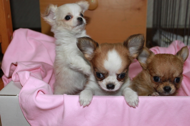 チビチビのチワワです。 3頭兄妹ですよ〜ママもパパもチビっこいですので〜 まだ目が開かないけどキット可愛いですよ(^_-)-☆ お店にはいませんので見学ご希望の方はご連絡くださいね〜
