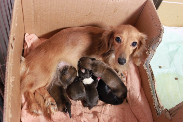 こちらのbabyも生まれたてデース(●^o^●) 3姉妹です〜目があいたらきっと可愛いですよ〜 でも・・違うワンコが見える・・? ママも可愛いでしょ〜☆彡