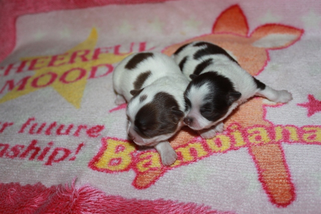 これまた可愛い柄のチワワンコの誕生で〜す。 まだ目が開いてませんが・・・(^O^)/ 可愛くなると思いますよ〜