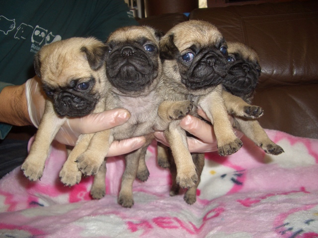 パグの女の子集団! 可愛い〜としか言えないお顔してるでしょ(●^o^●) 見学大歓迎です。 |
