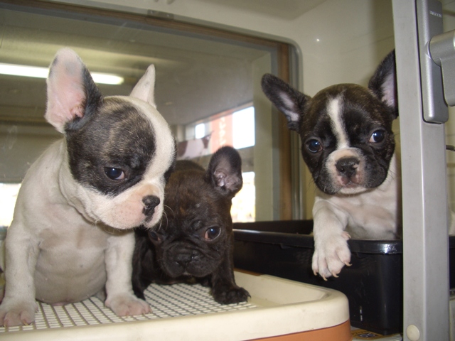 犬種は・・Fブル、ボストンテリア、パグ、シーズー、ペキニーズの5犬種 ですぅ〜見てるだけでも癒されるよー(●^o^●) どうぞ家族みーんなでお店に遊びに来てね!!