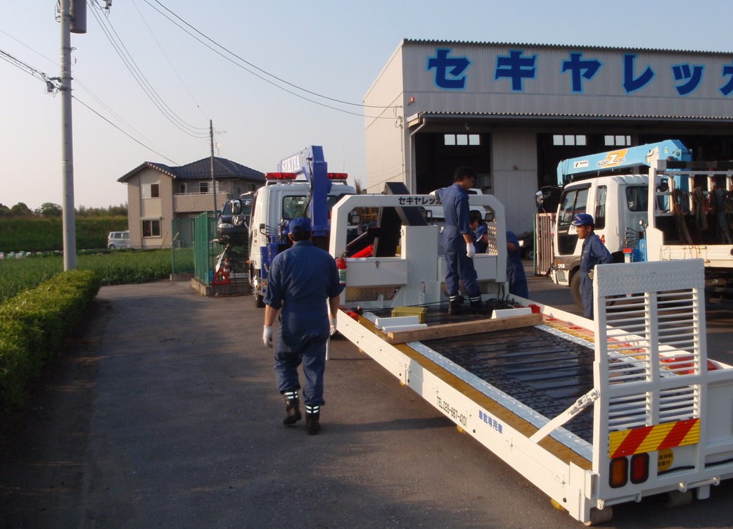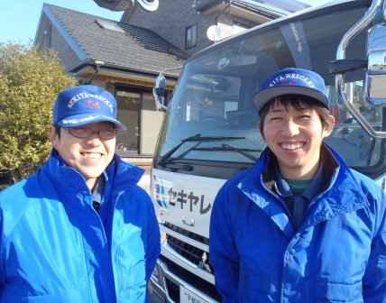 セキヤレッカーに新しいスタッフが加わりました。 笑顔がとってもいいでしょう? 左が大垣くん、右が平賀くんです。 ふたりとも自動車整備士。 レッカー業界こそ初めてですが、それぞれ自動車業界で頑張ってきた自動車のプロです。