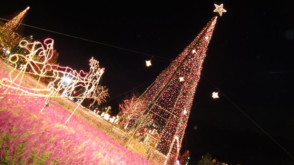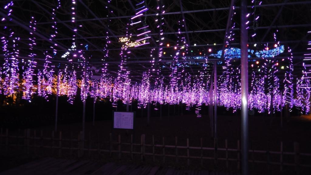 さて、写真は『足利フラワーパーク』です。 足利フラワーパークと言えば、藤棚が有名ですが、冬にはこんなイルミネーションの催しをしているんです。 LEDの藤棚が風に揺られる様が、すごくきれいでしたよ。
