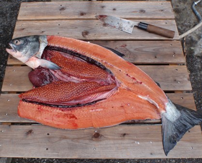 最近急に寒くなって、いよいよ冬も目前になってきました。 秋といえば鮭!いくら!! 写真は、北海道から送って頂いた鮭です。大きい〜!